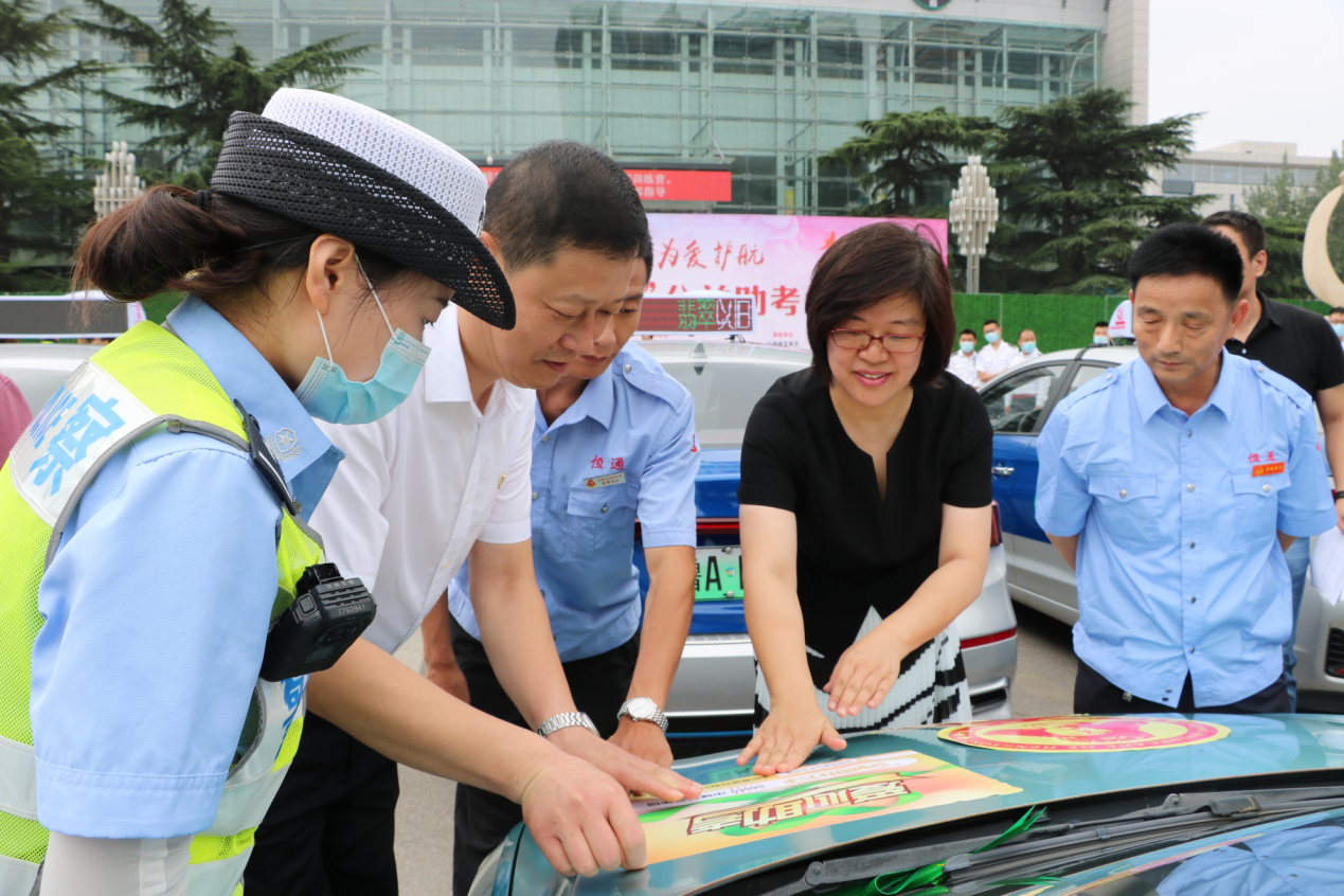 此次助考活動,舉辦方還為愛心助考車輛準備了愛心助考貼和綠絲帶標識。李培鋼董事長與濟南廣播電視臺黨委委員、副臺長許偉、濟南市公安局交警支隊副支隊長趙洪銘等領(lǐng)導一同來到送考車輛前,為助考車輛貼上了愛心助考貼、綁上綠絲帶,標志著愛心助考活動正式啟動。