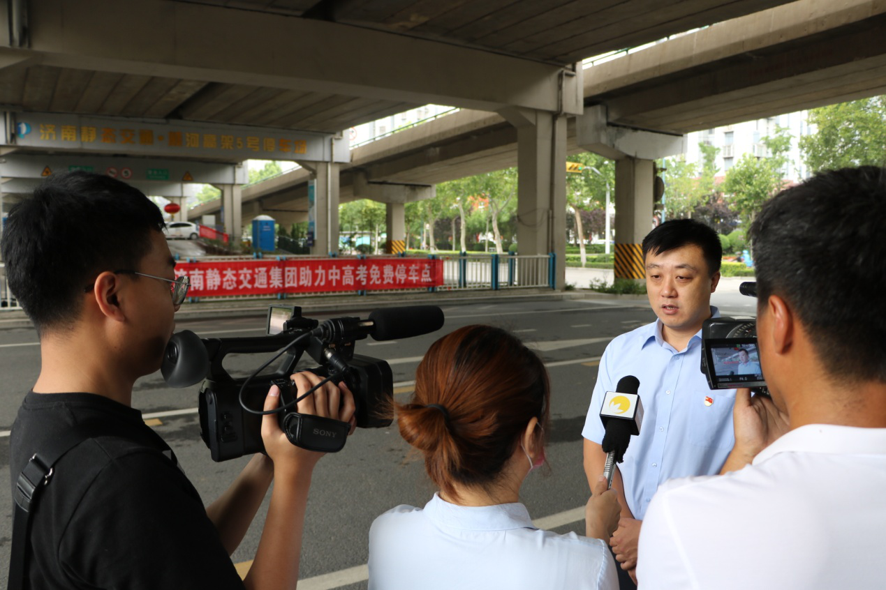 愛心點點,匯聚成河。愛心助考活動啟動的同時,在順河高架橋下,同樣進行著一場助考活動。濟南靜態(tài)交通集團副總經(jīng)理趙新在順河高架橋下接受了濟南《交通進行時》欄目的采訪。